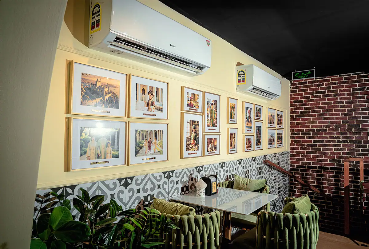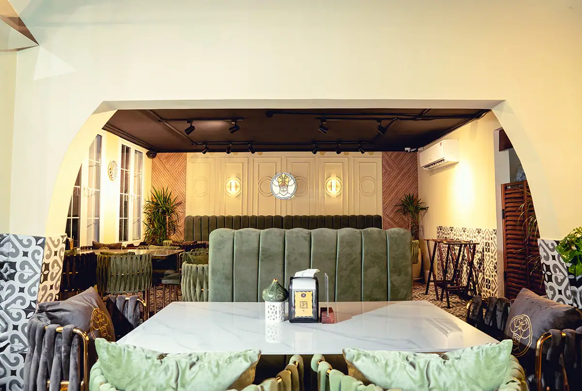 Lighting was another crucial ingredient. We designed ambient lighting using Turkish-style fixtures that scatter golden light across the room. Soft-glow pendants were placed above each table to create a private and intimate atmosphere while keeping the overall space warm and welcoming.